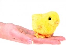 Le poussin est recouvert d'une fourrure synthétique douce qui imite les plumes naturelles.