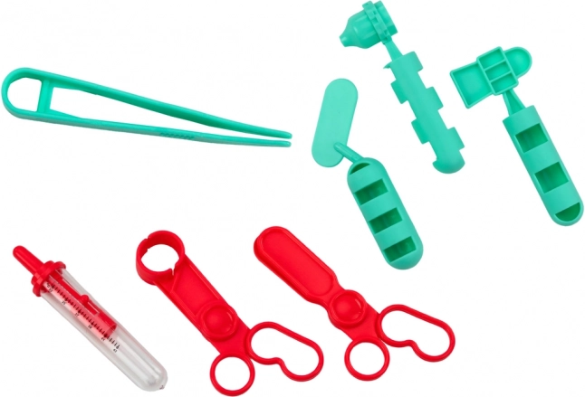 Le set est rangé dans une valisette en plastique pratique pour un stockage et un transport faciles, tout en ajoutant une touche d’authenticité qui encourage les enfants à organiser un jeu de docteur partout où ils se trouvent.