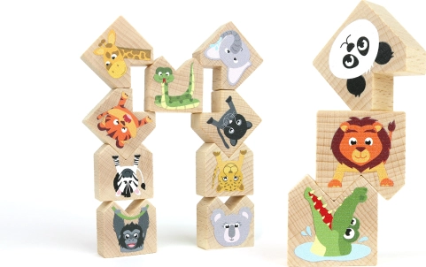 Un jeu pour enfants qui combine divertissement et apprentissage. Les animaux exotiques, transformés en acrobates, peuvent être empilés de diverses manières afin de développer la motricité des enfants. Le jeu convient à 1 à 2 joueurs et est idéal pour les enfants dès 2 ans.