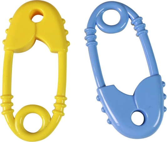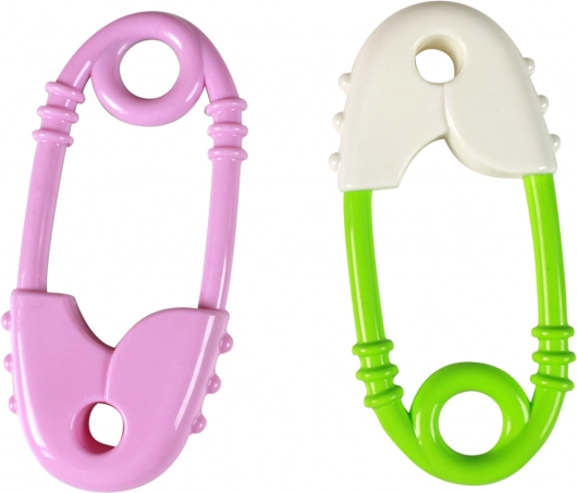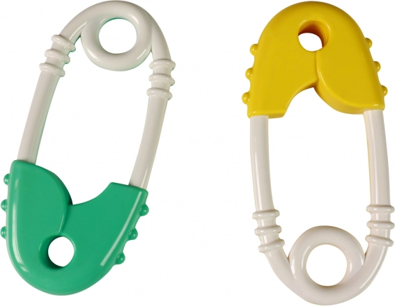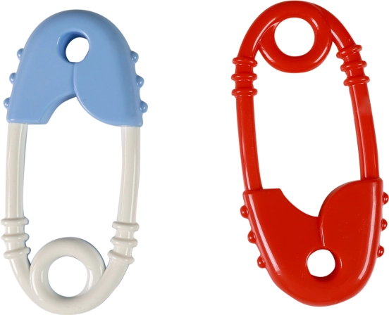 Ce hochet et anneau de dentition coloré en forme de grande épingle est conçu pour les tout-petits. Il combine un effet hochet stimulant avec des textures souples pour apaiser les gencives durant la poussée dentaire. Sa forme ergonomique avec poignée circulaire se tient facilement même par de petites mains.