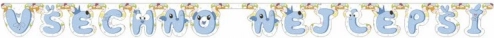 Super idée pour une fête - guirlande 'Tous nos vœux' dans un élégant design bleu ! Déroulez-la facilement et suspendez-la à n'importe quel endroit.