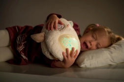 Ce doudou en peluche ultra doux associe l’étreinte chaleureuse à des fonctions intelligentes pour faciliter l’endormissement. Le hibou projette un ciel étoilé en 8 couleurs, diffuse 8 berceuses ainsi que des sons prénataux apaisants auxquels les tout-petits sont habitués dans le ventre de maman. Une fois la mélodie terminée, la lumière reste douce encore environ une minute puis s’éteint automatiquement.