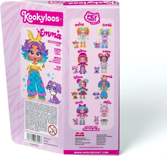 Faites connaissance avec Lucy, Sophie, Katie, Roxy, Alice, Daisy, Diana et Emma — les stars de la série KOOKYLOOS Pet Party. Chaque poupée arrive avec un style unique, une tenue à l’éclat nacré et un petit animal qui souligne sa personnalité. Grâce à un mécanisme ingénieux, un seul clic suffit pour changer l’expression du visage — un plaisir qui ne s’épuise pas.
