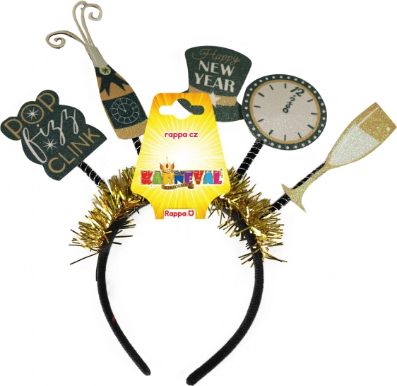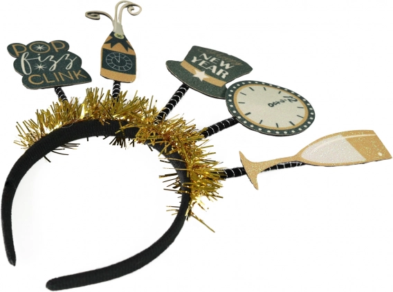 Un serre-tête du Nouvel An élégant pour une fête parfaite. Design noir et or avec des éléments ludiques qui apporteront de la diversion à chaque soirée.