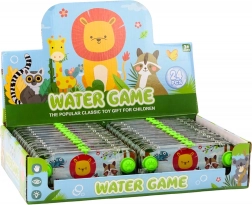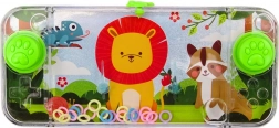 Il s’agit d’un jeu d’arcade aquatique classique à motif de lion, souvent présenté sous la forme d’un petit jouet rectangulaire. Son mécanisme est simple mais très addictif. Le jeu a une forme rectangulaire, agréable à tenir en main. La face avant arbore un motif de lion qui lui confère un style unique. Sur les côtés droit et gauche de l’appareil se trouvent deux boutons verts décorés d’empreintes de pattes de lion. Ces boutons sont essentiels au jeu et facilement accessibles aux doigts du joueur. Au centre, dans un réservoir transparent rempli d’eau, se trouvent des anneaux colorés qui flottent librement dans le liquide. Au fond du jeu dépassent deux picots sur lesquels il faut enfiler les anneaux. Ces picots sont les cibles que le joueur doit atteindre avec les anneaux.