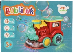 La locomotive est équipée d'une solution à bulles, le liquide est versé dans la cheminée à l'aide de la pipette incluse. Avec ses dimensions de 18 cm, elle est idéale pour jouer à la maison et à l'extérieur. Fonctionne avec 4 piles AA (non incluses).