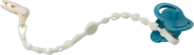 La tétine fixée par un cordon fait partie de l’ensemble : idéale pour jouer à calmer le bébé et éviter de la perdre.