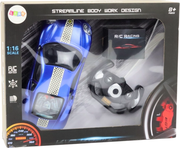 Nous présentons une voiture télécommandée à l’échelle 1:16, qui se distingue non seulement par son design unique, mais aussi par ses fonctionnalités avancées. La carrosserie laquée élégante en bleu intense lui confère une allure moderne et stylée. Un autre élément décoratif marquant est la bande noire et blanche sur la calandre, qui s’étend sur toute la voiture et lui donne une touche sportive et dynamique.
