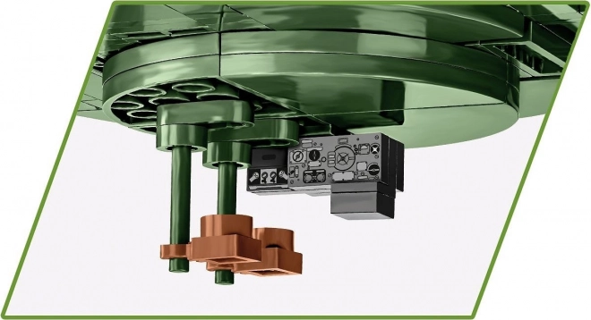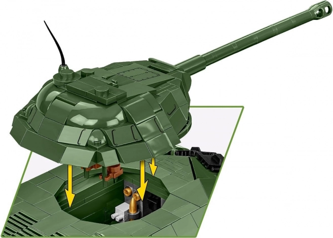La tourelle est rotative, le canon se relève et s’abaisse, et les chenilles tournent réellement lorsque le modèle se déplace. Sous la tourelle amovible se trouve une évocation de l’intérieur, et sous la trappe de service, on peut installer le modèle du moteur W-11. Les impressions des périscopes et d’autres détails soulignent l’authenticité. Le set est entièrement compatible avec d’autres marques de briques.
