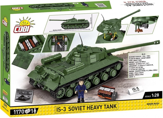 Construisez le légendaire char lourd IS-3, présenté au public pour la première fois lors du Défilé de la Victoire en 1945. Le modèle restitue fidèlement les formes arrondies typiques du blindage, des détails réalistes et offre une excellente expérience de construction et d’exposition – une fois assemblé, il mesure environ 35,5 cm de long.