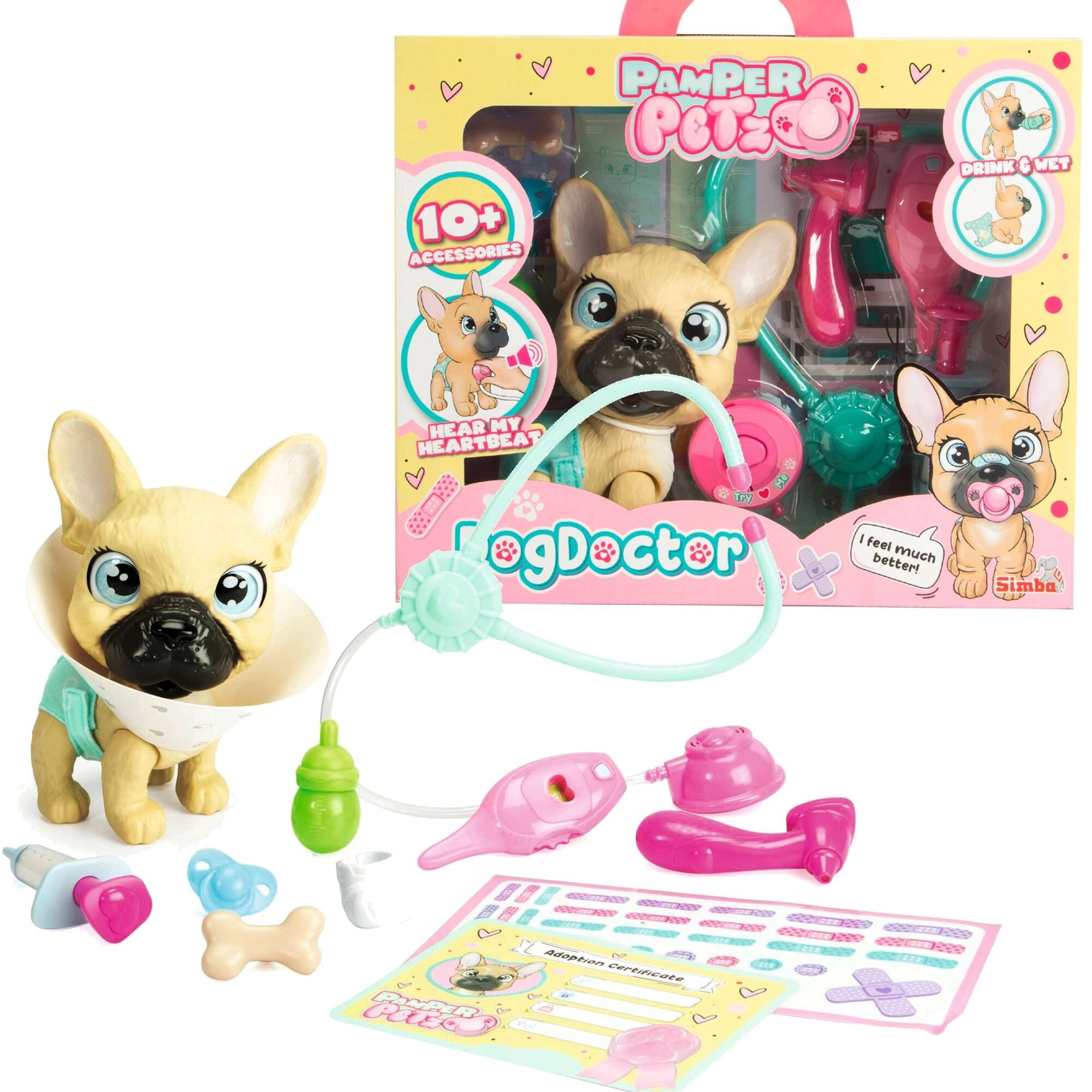 Découvrez le chiot adorable de la collection PAMPER PETZ avec un set vétérinaire pour des soins et un jeu réalistes. Le bouledogue français de 17 cm sait boire de l’eau et faire pipi dans une couche, qui change de couleur en jaune lorsqu’elle est mouillée. Il attend son petit soigneur avec plus de 10 accessoires, dont un stéthoscope avec son, et offre aussi une patte magique qui révèle le sexe de l’animal après l’avoir frottée avec de l’eau.