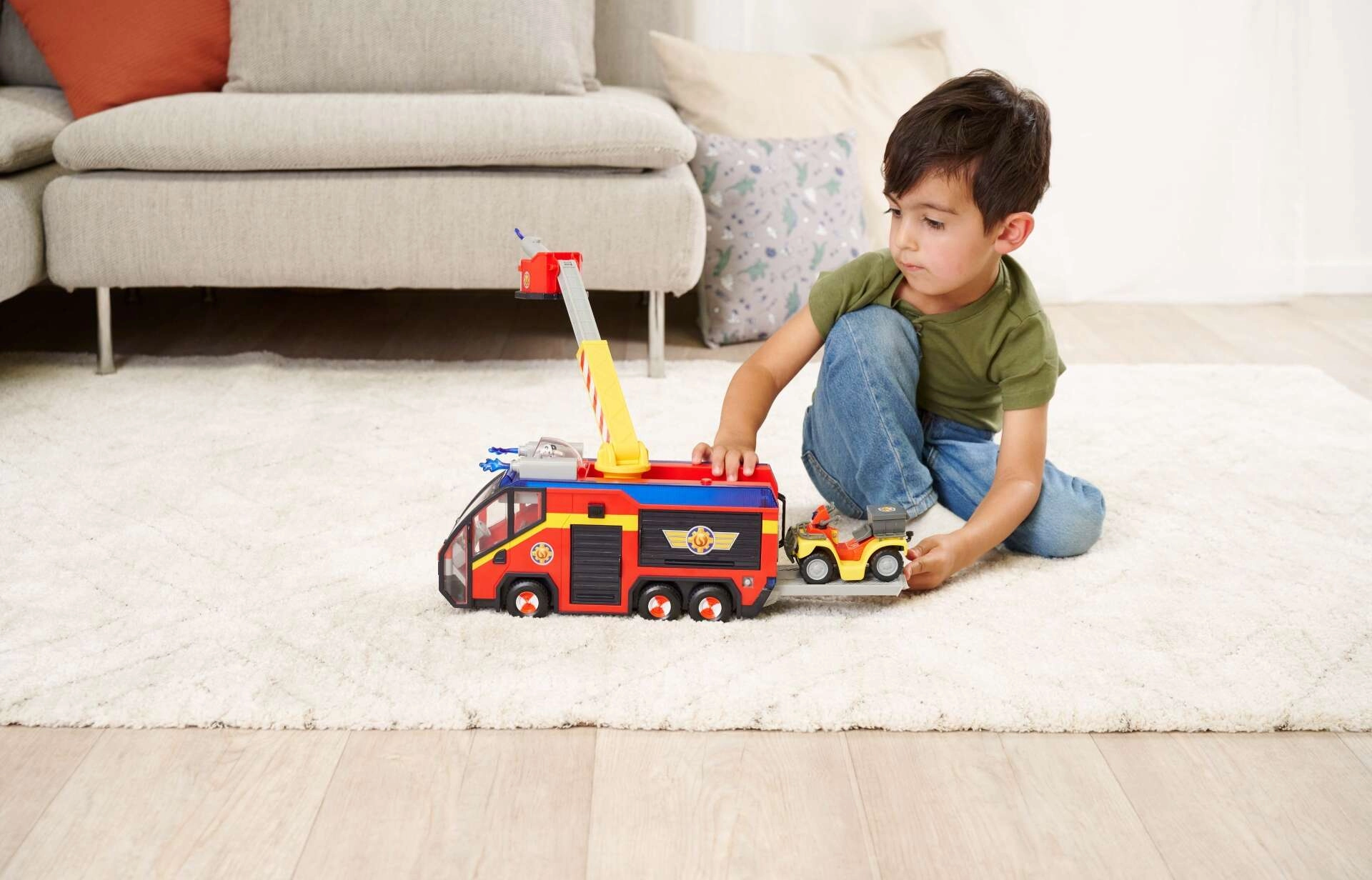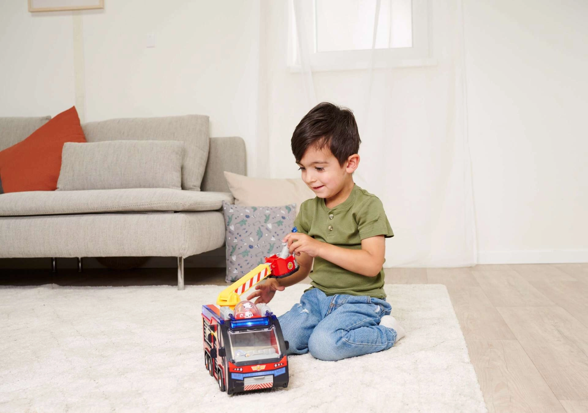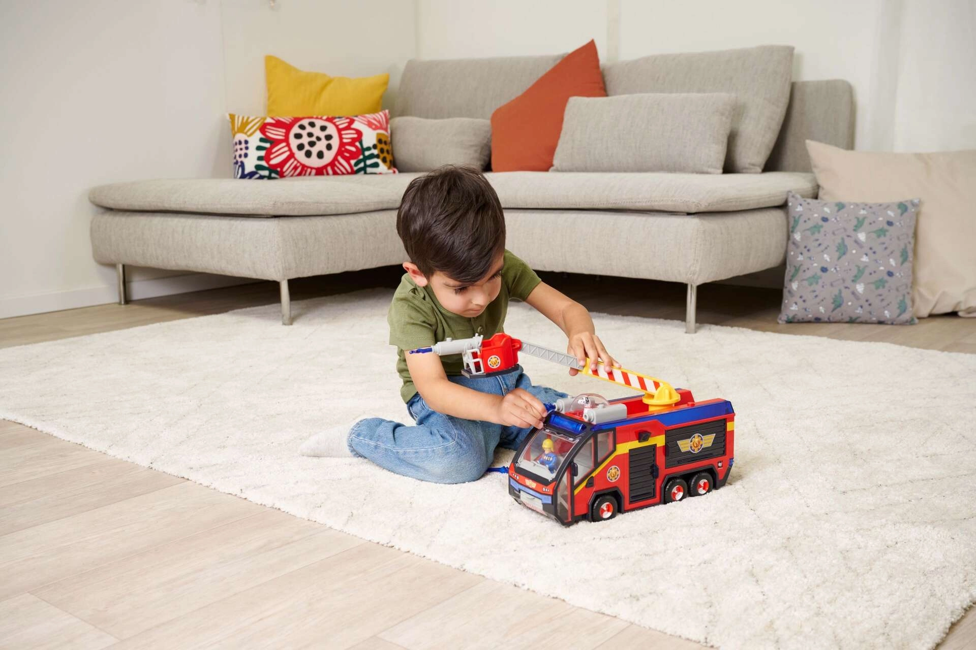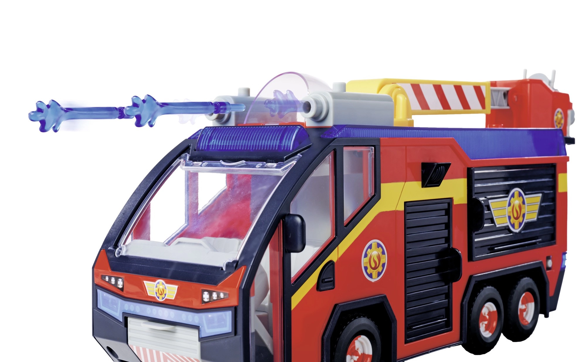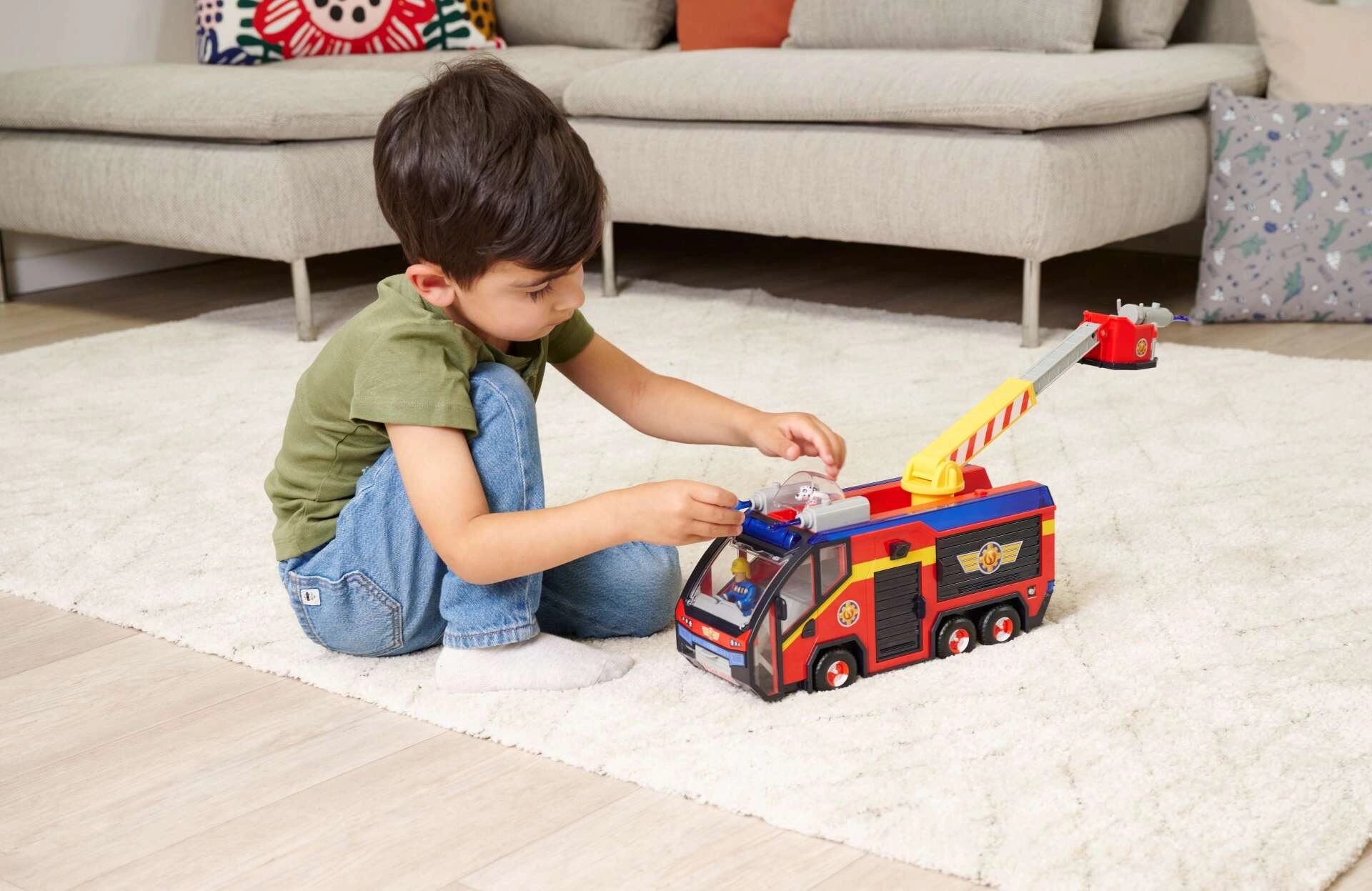 - JOUET SOUS LICENCE : Le véhicule le plus célèbre de Sam le Pompier, Jupiter, dans une nouvelle version qui reflète fidèlement le véhicule de la saison 14 de la série. Jupiter dispose d’une échelle de pompier rotative, extensible et orientable, avec des projectiles d’eau en plastique.