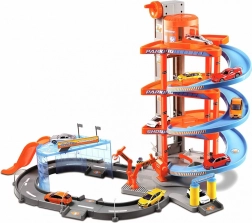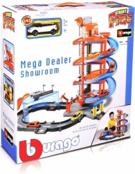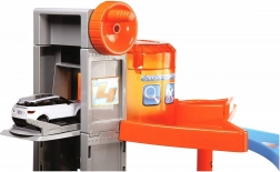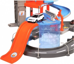 Ce garage Bburago à plusieurs étages avec station de lavage cache de nombreux éléments fonctionnels ! Monte la petite voiture en ascenseur jusqu’au dernier étage du garage et fais-la dévaler la route ! Arrête-toi au service, lave la voiture à la station de lavage et passe sous les barrières levantes !