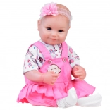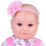 Cette adorable poupée bébé est fabriquée avec des matériaux de qualité et une grande attention aux détails : corps souple, bras et jambes en caoutchouc articulés, traits du visage réalistes avec yeux bleus et longs cils. La tête présente des cheveux peints, idéale même pour les plus jeunes petites mamans. La tenue dans des tons roses avec des motifs d’animaux et un serre-tête fleuri donne à la poupée une allure douce et délicate.