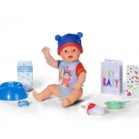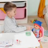 La poupée BABY born Jonas 43 cm est comme un vrai bébé – elle boit au biberon, verse de vraies petites larmes, ferme et ouvre les yeux en tournant la tétine, fait pipi dans la couche et est prête pour le bain. Grâce aux accessoires magiques, les enfants s’exercent aux rituels quotidiens de soin d’un bébé tout en développant empathie et motricité fine.