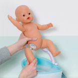 - Boit de l’eau; verse des larmes; ouvre/ferme les yeux en tournant la tétine; fait pipi dans la couche; adaptée au bain; assiette magique avec plat préféré; pot magique avec « caca » et « pipi »; membres articulés; sait s’asseoir