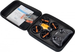 Il est équipé de lumières vives qui lui confèrent du caractère et permettent de voler même après la tombée de la nuit, ce qui assure encore plus de plaisir. La commande est simple et intuitive grâce à la télécommande fournie. Elle permet de contrôler le mouvement du drone vers le haut, le bas et sur les côtés, rendant possibles différentes manœuvres et actions en vol.