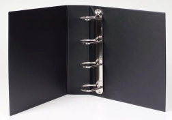 Classeur catalogue de qualité au format A4, en élégant coloris noir, équipé d’une poche transparente sur la couverture avant et sur le dos. Grâce à la mécanique à 4 anneaux, l’archivage des documents est facilité.