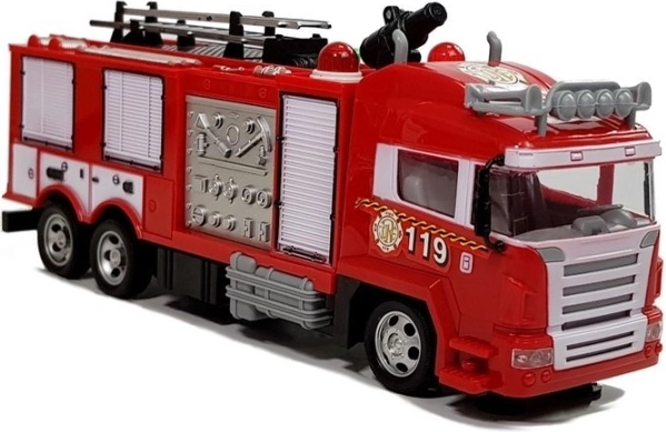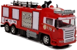 Le grand camion de pompiers rouge est équipé de roues avec bande de roulement en caoutchouc. Il franchit facilement de petites irrégularités sur son trajet. Le design met en avant les éléments essentiels, ce qui le fait ressembler à son équivalent grandeur nature.