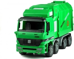 Ce grand camion poubelle vert ravira tous les enfants qui aiment les engins de chantier et le jeu réaliste. Grâce à la porte arrière ouvrante et au mécanisme intelligent de basculement, vous collectez facilement les déchets et les videz dans la benne. La cabine ouverte peut accueillir une figurine de conducteur et un passager, le volant tourne et les rétroviseurs rabattables renforcent l’authenticité du jeu. Les roues profilées s’adaptent à différents terrains et le mouvement à inertie assure la conduite d’une simple poussette.