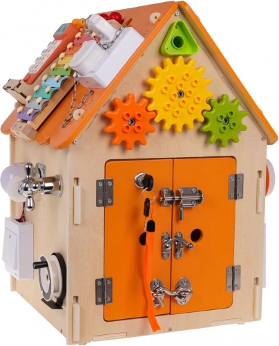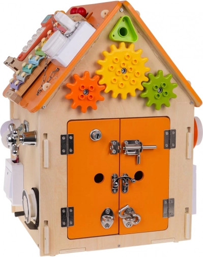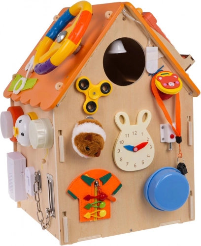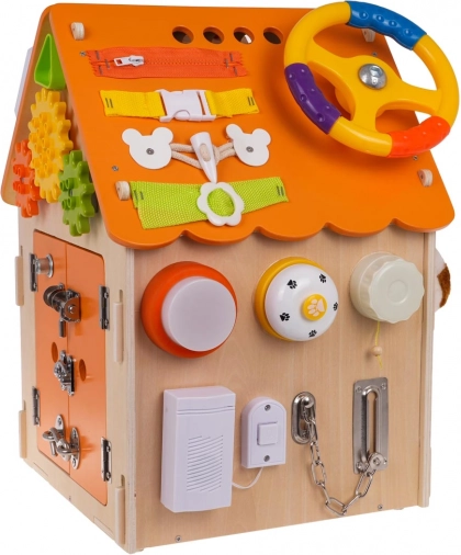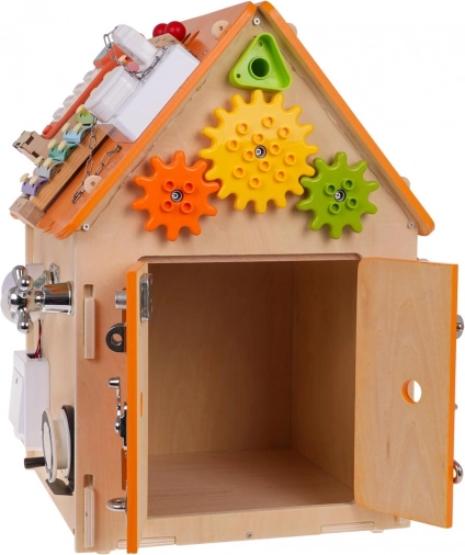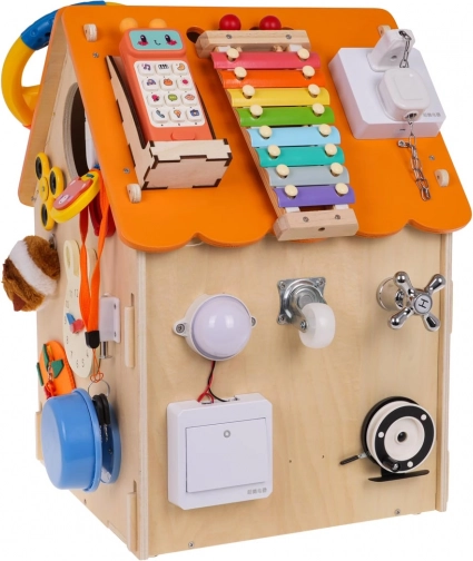 La maison est équipée d’un éclairage LED dissimulé sous le toit. Des éléments individuels, tels que les sonnettes, la boîte à musique et le téléphone, disposent de fonctions sonores. Les fonctions interactives sont alimentées par 7 piles AAA 1,5 V (incluses). Jouer avec la maison développe globalement les compétences des enfants et leur apprend à utiliser les objets du quotidien.
