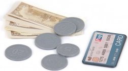 Le coffret comprend 41 pièces d’accessoires différentes, dont une machine à café, des tasses, un tamper, des pièces, des billets, une caisse enregistreuse et un présentoir à pâtisseries.