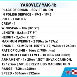 Les pièces de construction vous permettent de réaliser une réplique fidèle de l'avion Yakovlev Yak-1b, qui a joué un rôle clé dans l'aviation pendant la 2e guerre mondiale.