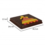 Insérer de petites pièces dans les ouvertures du plateau entraîne les doigts, la préhension et la coordination œil-main, idéal pour les enfants d’âge préscolaire.