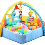 Le tapis aide à développer les compétences motrices et l'imagination de l'enfant grâce à des jouets colorés sur les arches. Les matériaux permettent à l'enfant de reconnaître différentes formes, couleurs et textures tandis que les éléments bruissants stimulent la curiosité. Le tapis est facilement pliable et lavable, idéal pour les voyages. Ce tapis de jeu accompagne la croissance de votre enfant et lui assure des heures de jeu actif.