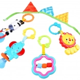 Ce set comprend 30 boules en plastique et quatre jouets suspendus qui aident au développement des compétences motrices.