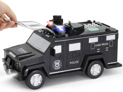 Cette tirelire interactive en forme de voiture de police protège les économies des enfants tout en les divertissant. Les enfants peuvent saisir un code de sécurité (par défaut 0000), le confirmer en touchant le scanner d’empreinte digitale (simulation) et ouvrir la porte du coffre. Les billets sont aspirés automatiquement par la fente avant, les pièces s’insèrent par l’ouverture supérieure sous le couvercle.