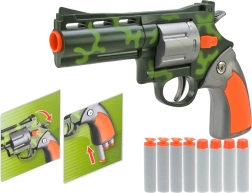 Le set comprend un pistolet compact au motif camouflage, confortable à tenir d’une seule main. Les projectiles en mousse et caoutchouc souple garantissent une sécurité et une légèreté maximales. Le set comprend 6 projectiles.