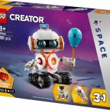 Avec les mêmes briques, reconstruisez un adorable chien spatial avec quatre pattes articulées et une tête rotative, ou une élégante fusée prête au décollage. Les trois variantes utilisent un élément lumineux qui dynamise le jeu comme l’exposition sur une étagère.