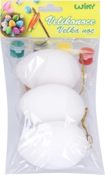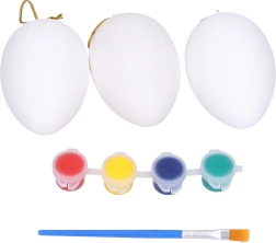 - Kit complet : 3 œufs en plastique, peintures et pinceau