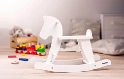 Découvrez un classique intemporel pour la chambre d’enfant : le cheval à bascule en bois blanc, qui allie plaisir de mouvement et soutien du développement naturel. Le mouvement de bascule aide à développer l’équilibre, la coordination et la motricité globale, tandis que la faible hauteur d’assise (env. 28 cm) donne confiance lors des premières balades.