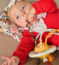 - Soulagement lors de la dentition – différentes surfaces à mordiller pour masser les gencives.
