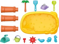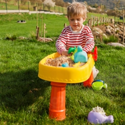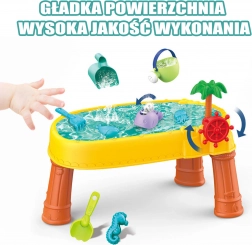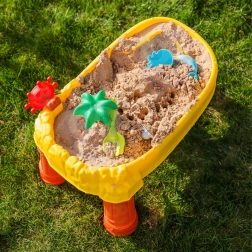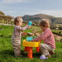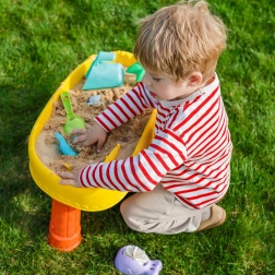 Le pack comprend 8 accessoires pratiques – moules, petit poisson, arrosoir, gobelet avec anse, râteau et pelle – qui encouragent la créativité, la motricité fine et la coopération entre enfants. La table est légère, facile à assembler et à nettoyer, parfaite pour le jeu quotidien à l’intérieur comme à l’extérieur.