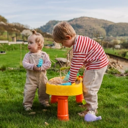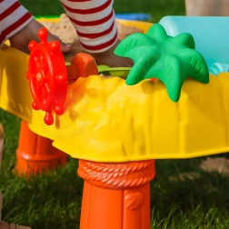 La table d’eau et de sable WOOPIE est idéale pour des expériences sensorielles avec l’eau et le sable. Grâce à sa construction stable et à ses accessoires colorés, les enfants profiteront d’heures de jeu au jardin, sur le balcon ou dans la chambre. La barre à roue pirate ajoute une dimension narrative et stimule l’imagination.
