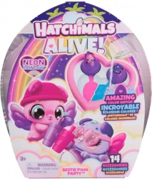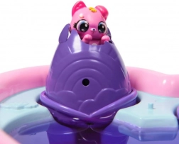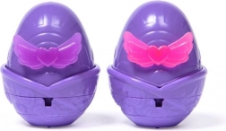 Plongez les œufs dans le bassin en forme de cœur, retirez les petites ailes et versez lentement de l’eau – dès que les deux moitiés du cœur changent de couleur, vos Hatchimals éclosent. En ajoutant plus d’eau, les couleurs se fondent en violet pour un look néon spectaculaire. L’éclosion dans l’eau avec changement de couleur transforme chaque moment de jeu en une expérience unique.