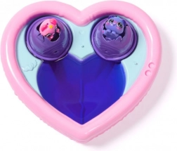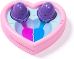 Placez les œufs dans le bassin en forme de cœur, retirez les petites ailes et versez lentement de l’eau. Dès que les deux côtés du cœur changent de couleur, les figurines éclosent. En ajoutant plus d’eau, les teintes se fondent en violet pour un effet « wow » encore plus grand.