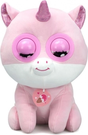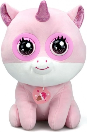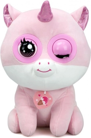 Peluche câline en forme de licorne au parfum de fraise, qui captive chaque enfant avec ses yeux qui clignent et ses effets sonores.