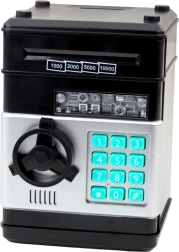 La tirelire est équipée d’un mécanisme d’insertion automatique des billets et d’une fente classique pour les pièces située sur la partie supérieure de l’appareil. Cette combinaison permet de collecter des économies sous différentes formes, rendant le produit universel et fonctionnel. L’accès au contenu du coffre est possible après saisie d’un code PIN à quatre chiffres – la configuration par défaut est 0000. L’utilisateur peut toutefois modifier le mot de passe à tout moment, ce qui renforce le sentiment de confidentialité et de contrôle sur ses économies.
