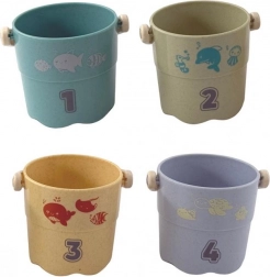 Un adorable ensemble de petits seaux pour l’eau ravira chaque bébé et tout-petit. Idéal pour le bain, la plage et le bac à sable. Encourage le jeu avec l’eau, le développement de la motricité fine et l’apprentissage des couleurs et des chiffres. Couleurs joyeuses, prise en main facile et usage polyvalent font de cet ensemble un jouet apprécié pour le bain quotidien.