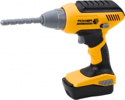 Le set comprend 4 embouts interchangeables : foret, tournevis plat, tournevis cruciforme et clé. Les enfants peuvent adapter l’outil à leurs « réparations ».