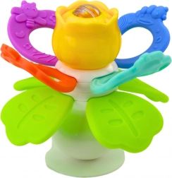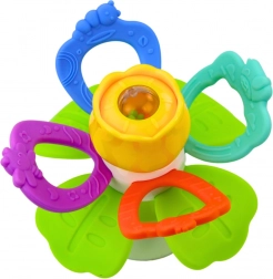 La partie centrale rotative de la fleur incite l’enfant à l’activité et au renforcement des mains. Les pétales colorés sont fabriqués dans un matériau souple et élastique, adapté à la mastication – idéal pendant la période de poussée dentaire. Enrichie de petites billes à l’intérieur de la fleur, qui tintent doucement lors des mouvements, elle stimule à la fois l’ouïe et la vue de l’enfant.