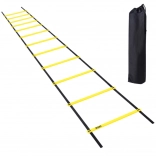Le set comprend une housse de transport pratique, qui protège l’échelle pendant le stockage et le transport et évite qu’elle ne s’emmêle avec d’autres équipements. L’échelle se déplie facilement et occupe peu d’espace, ce qui permet de l’utiliser sur les terrains, dans le jardin, en salle de sport ou dans des halls sportifs.