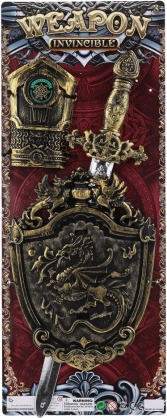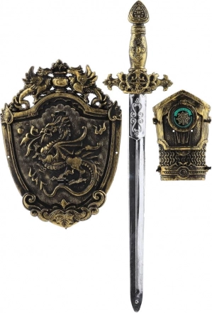 Set de chevalier avec épée en plastique, bouclier et garde de main pour enfants. Idéal pour jouer et pour le carnaval. Convient aux enfants à partir de 3 ans.