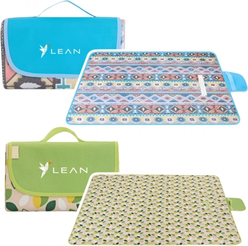 Couverture de pique-nique pliable LEAN 200×200 cm avec isolation contre l’humidité. Compacte, avec poignée et fermeture à scratch. Deux motifs : feuilles ou géométrie. Idéale pour la plage et le pique-nique.