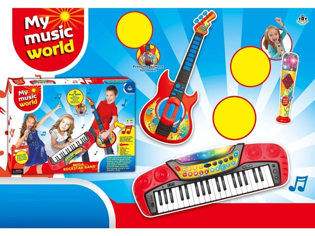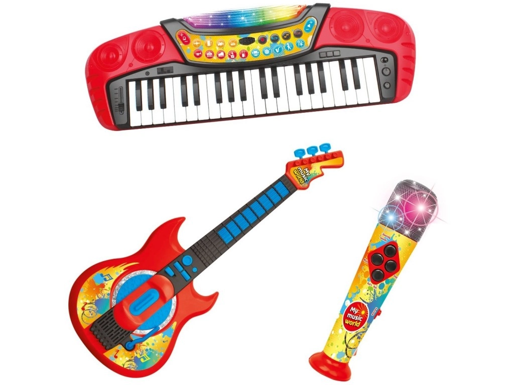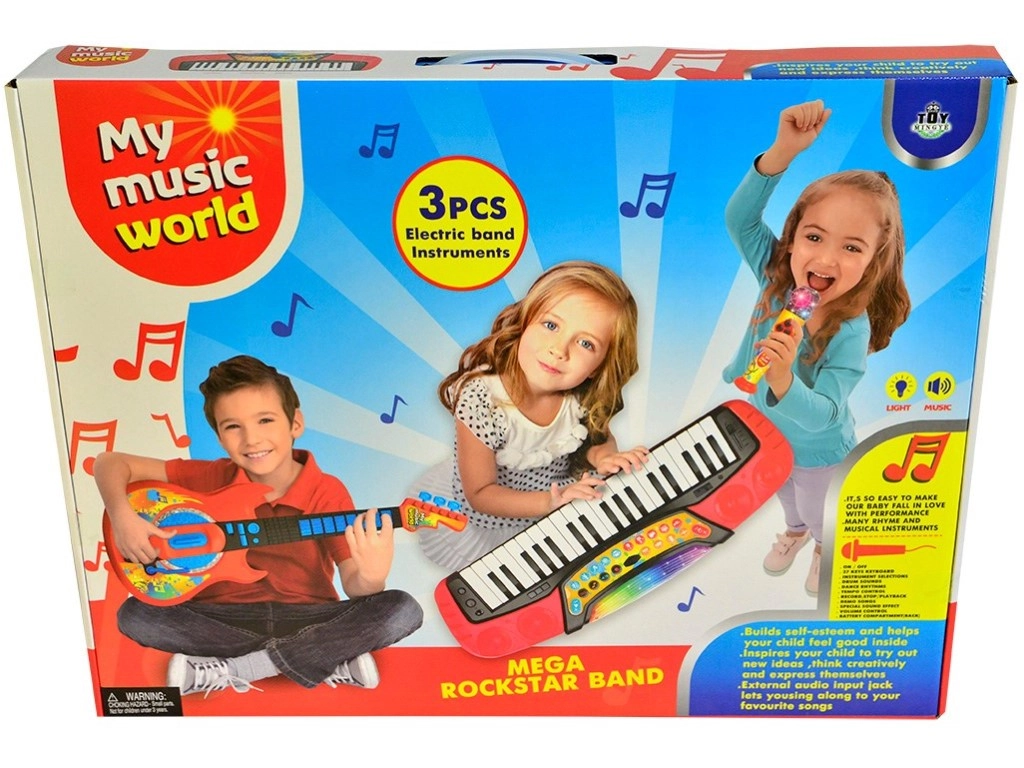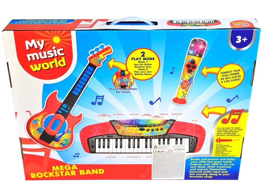 Ensemble 3-en-1 super amusant et interactif comprenant un piano électronique à 37 touches, une guitare et un micro. Idéal pour les petits musiciens !