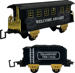 Deux wagons détaillés sont inclus – un wagon à charbon et une voiture voyageurs. Ils s’accrochent facilement et roulent en douceur sur la voie.